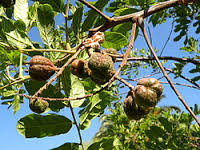 Dispuestas en espiral, pinnadas; de hasta 45cm de largo; de 7-15 foliolos alternos, en ocasiones opuestos; laminas de hasta 17X4.6cm; margen aserrado, crenado o casi entero; ápice redondeado o truncado; base aguda, ocasionalmente asimétrica; haz verde oscuro o verde amarillento y envés verde pálido u opaco. Peciolo pulvinado; peciólulos de hasta 5mm, pulvinados.